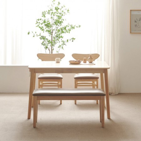 보니애가구 노블 고무나무 원목 4인 식탁세트 벤치형
